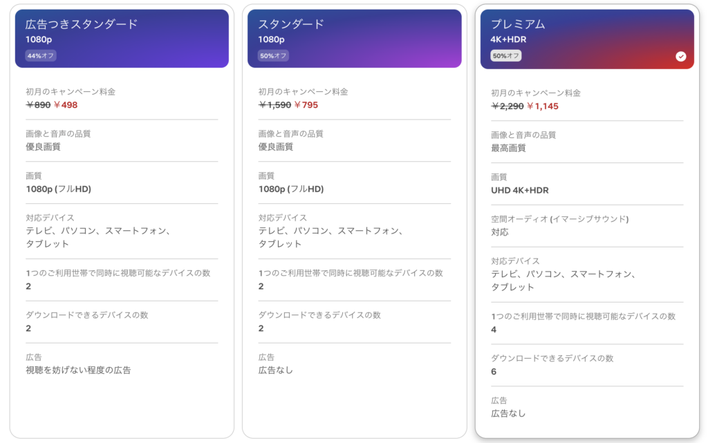 現在は画質や音質の違いによって「スタンダード」と「プレミアム」の2種類から選べます。