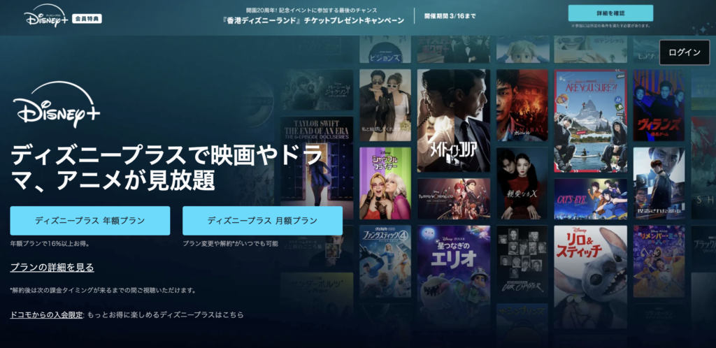 Disney+(ディズニープラス)の料金プランとサービス概要をまとめました。